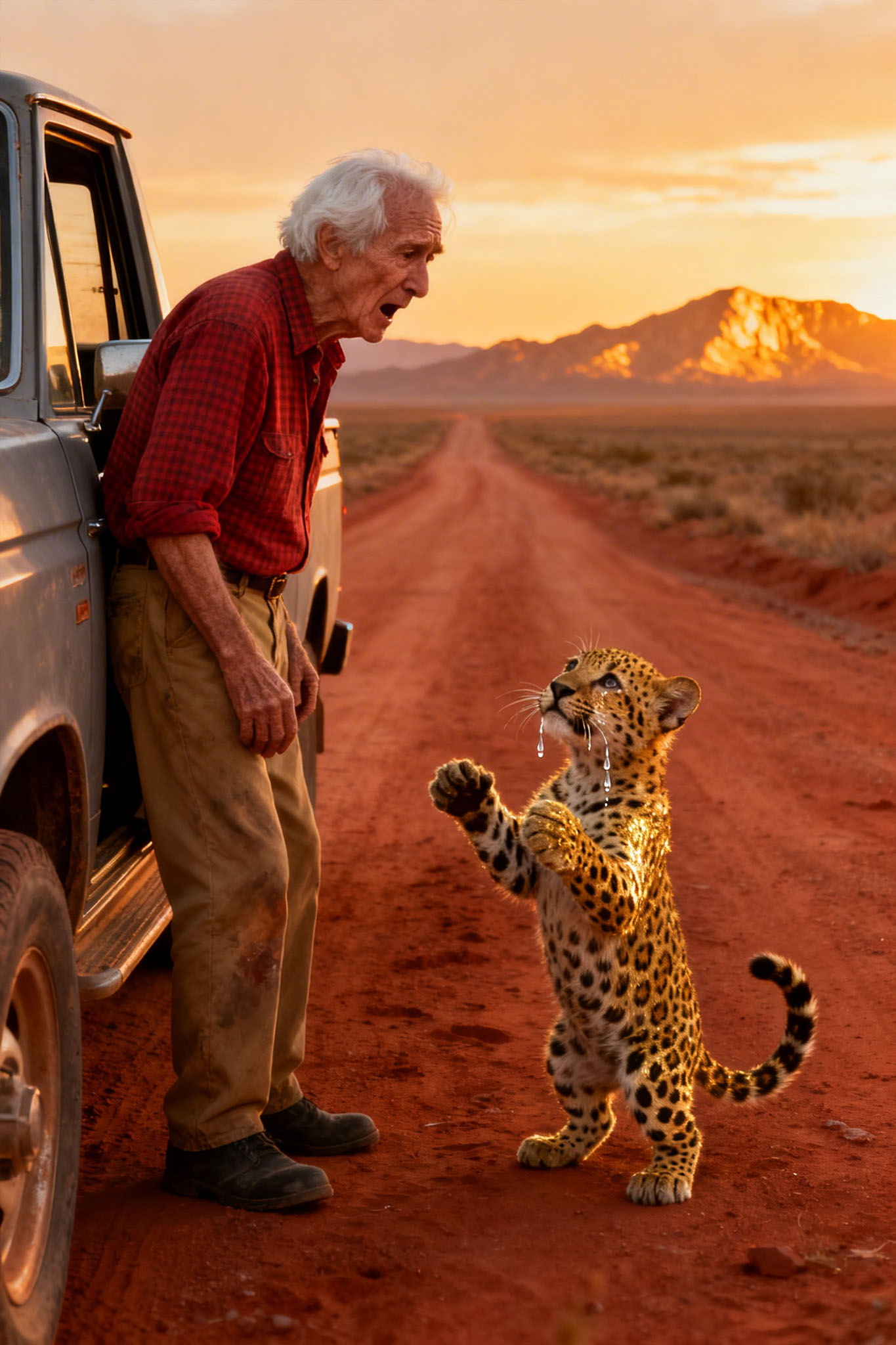 He checked his phone. The team would arrive in 10 minutes. He sat down on the ground next to the jaguar, his back against the post of the broken fence, under the sun that was already beating down on the desert. The cub approached him, sniffed him slowly, and curled up between his legs as if it had known him all its life. Roberto didn’t move; he carefully placed a hand on the little one’s back and felt it breathe calmly for the first time since it had appeared on the road that morning.