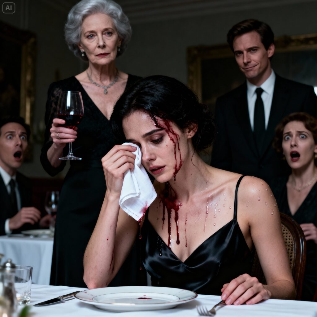 She studied me for less than ten seconds before lifting her glass of red wine and throwing it straight into my face. The room erupted in shocked gasps, but she laughed, loud and satisfied. “Just disinfecting the poor,” she said, as if she’d delivered a clever joke. The wine dripped from my hair onto the tablecloth, staining it deep crimson.