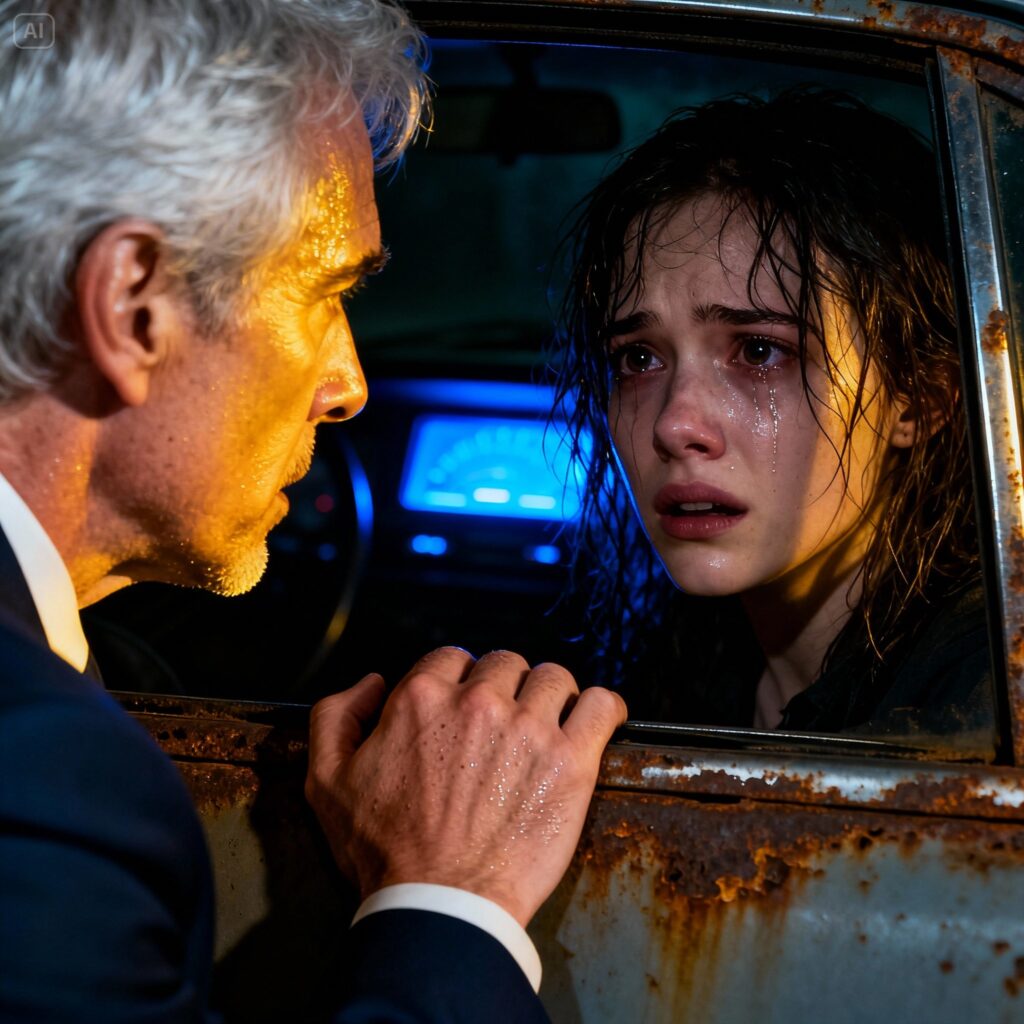 For a second, I thought it was security. Then I saw him—an older man in a tailored dark suit, standing under the parking lot lights like he belonged somewhere far more expensive than this cracked asphalt. Behind him, a black SUV waited with its headlights off.