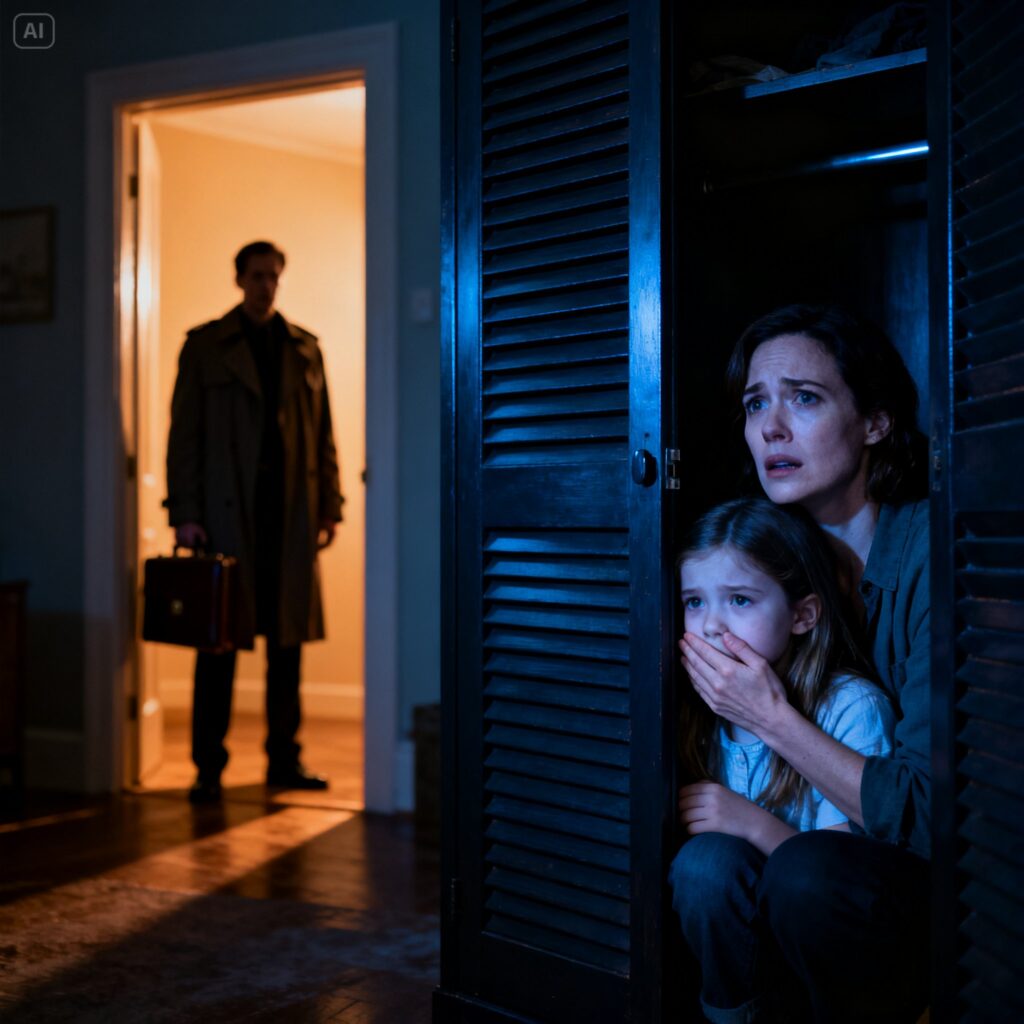 I grabbed Emma’s hand and pulled her toward the living-room closet. We slipped inside, closing the door silently behind us, leaving a thin crack for air.