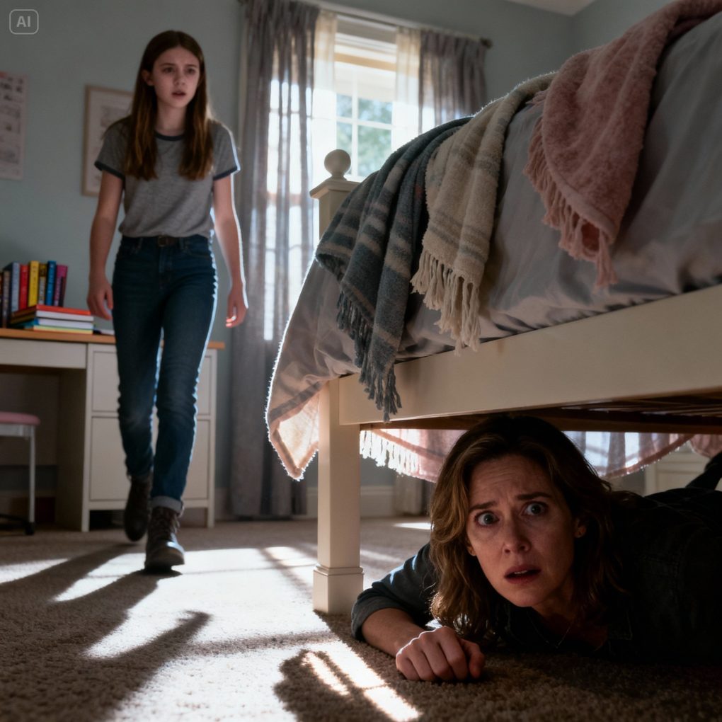 So I pretended to leave for work, then slipped back inside and hid under her bed.
