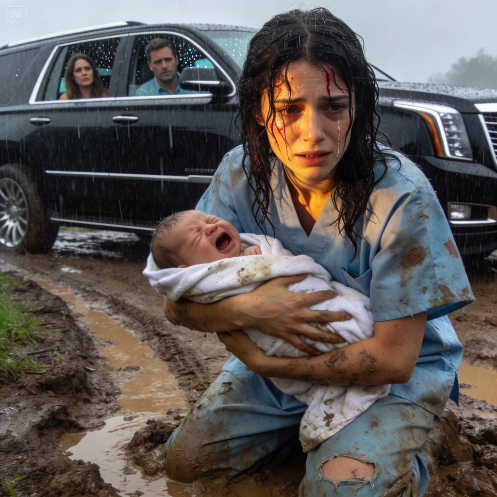 Every step was a brutal effort. The pains of childbirth throbbed as if my body were still in that cold hospital room. Blood ran down my legs, mixed with the rainwater from the storm.