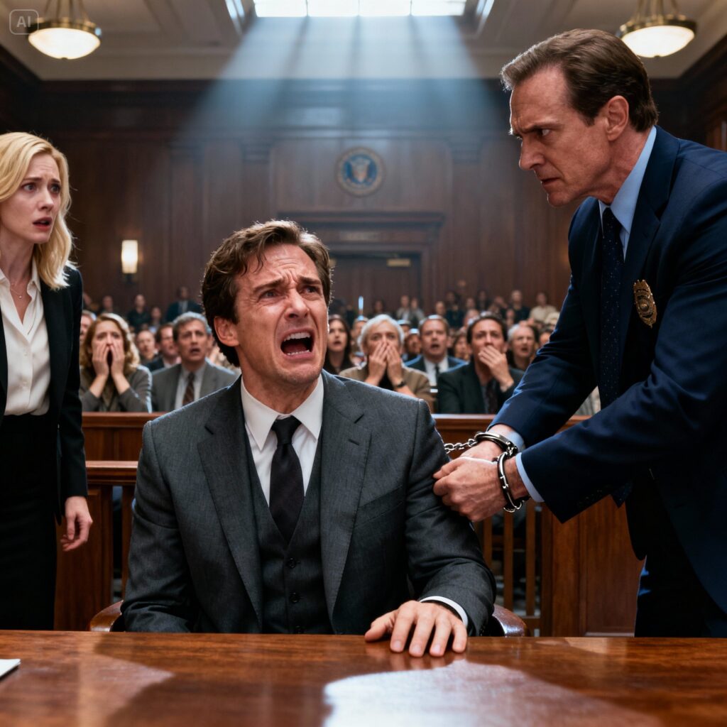 He added a little flourish—a shaky exhale, a hand dragged across his face, then a carefully timed sniff. He wiped away a fake tear, slow enough for everyone in the packed courtroom to see. The cousins and aunts and uncles he’d invited were crammed into the back rows, dressed as if for a funeral, waiting to watch me be buried while still breathing.