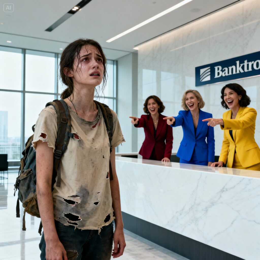 She was a young girl, maybe twenty-two or twenty-three. Her clothes were completely torn and stained with dirt. Her hair was tangled, her face marked by sleepless nights. She was barefoot, carrying an old, faded backpack hanging from a single strap. When she took her first steps onto the marble floor, the agency’s usual murmur stopped abruptly.