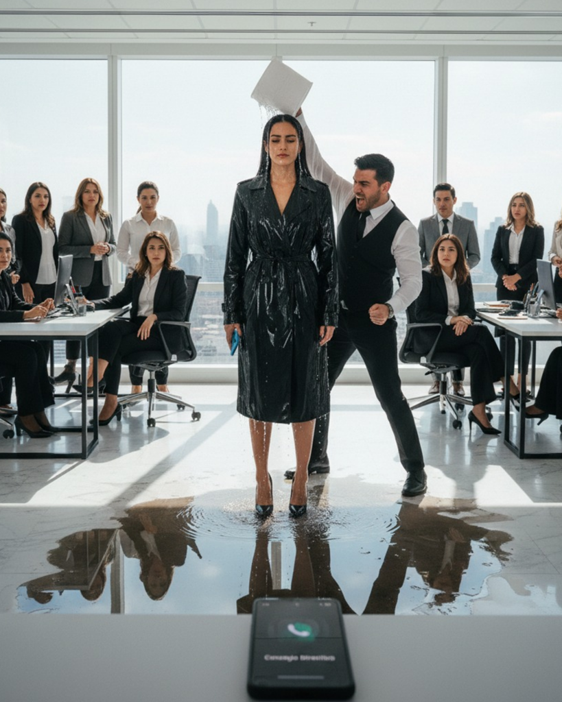 Forty employees watched, paralyzed, as Isabel stood there, drenched and shivering, but with a dignity that all the water in the world could not erase. No one in that office could have imagined they were witnessing the most brutal humiliation ever committed against the most powerful woman in the building. No one knew that this “beggar,” wet and silent, held in her hands the power to change their lives forever.