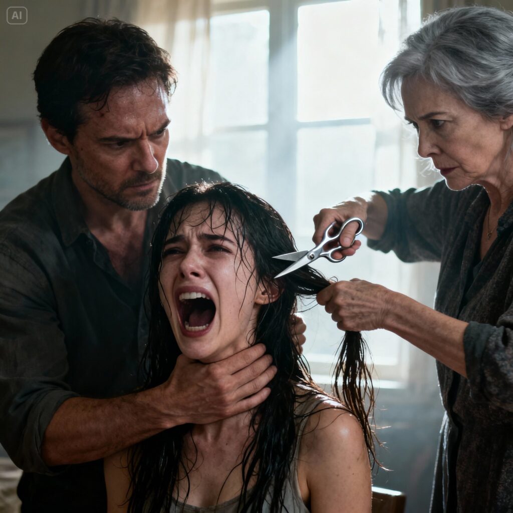 She held me still while Lorraine walked behind me. I felt the cold swipe of the scissors against my neck before I understood what she was about to do.