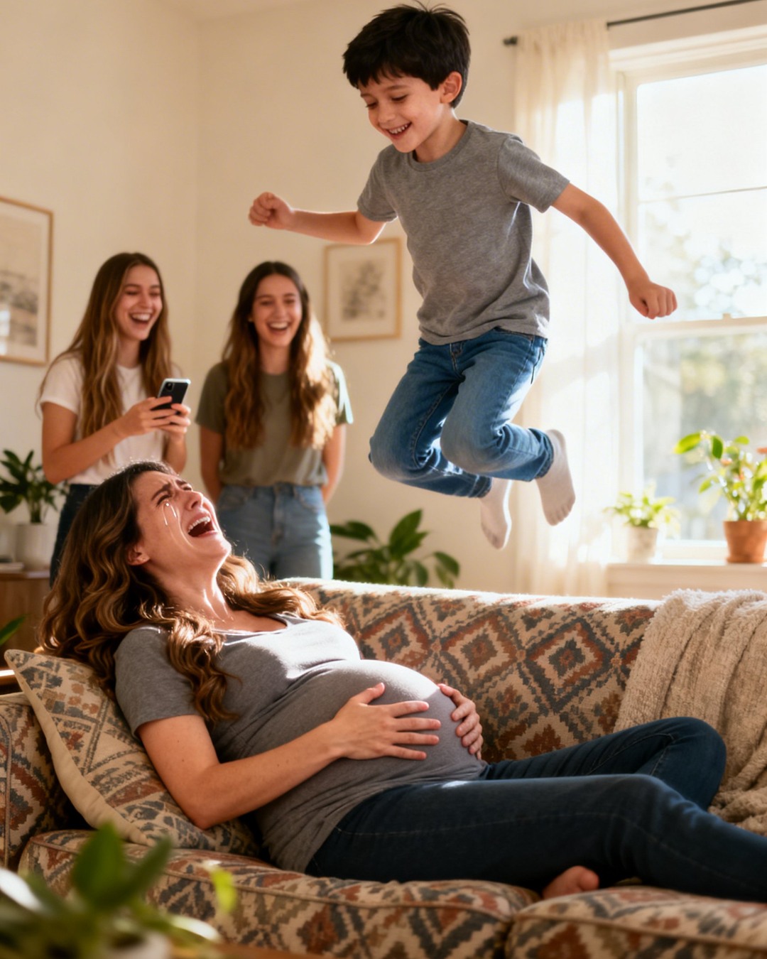 My six-year-old nephew jumped on my nine-month pregnant belly laughing, “Come out, baby!”—and seconds later, my water broke.