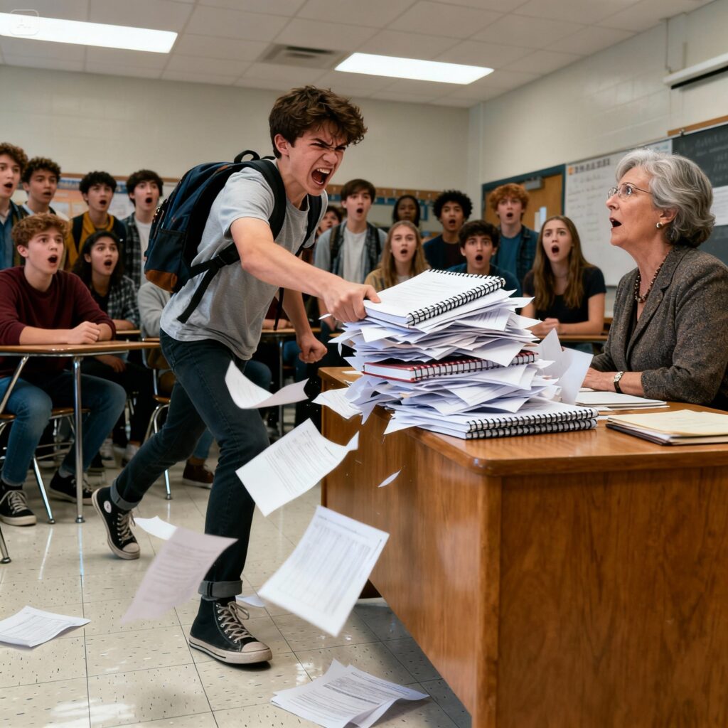 The sound of the book hitting the floor still echoed in my ears. It was a sharp, disrespectful, final sound. In that instant, the classroom ceased to be a place of learning and became a Roman coliseum. Thirty pairs of eyes stared at me, their gaze shifting between Santiago—the richest and most troublesome student in the school—and me, the “cheap teacher” in secondhand clothes.